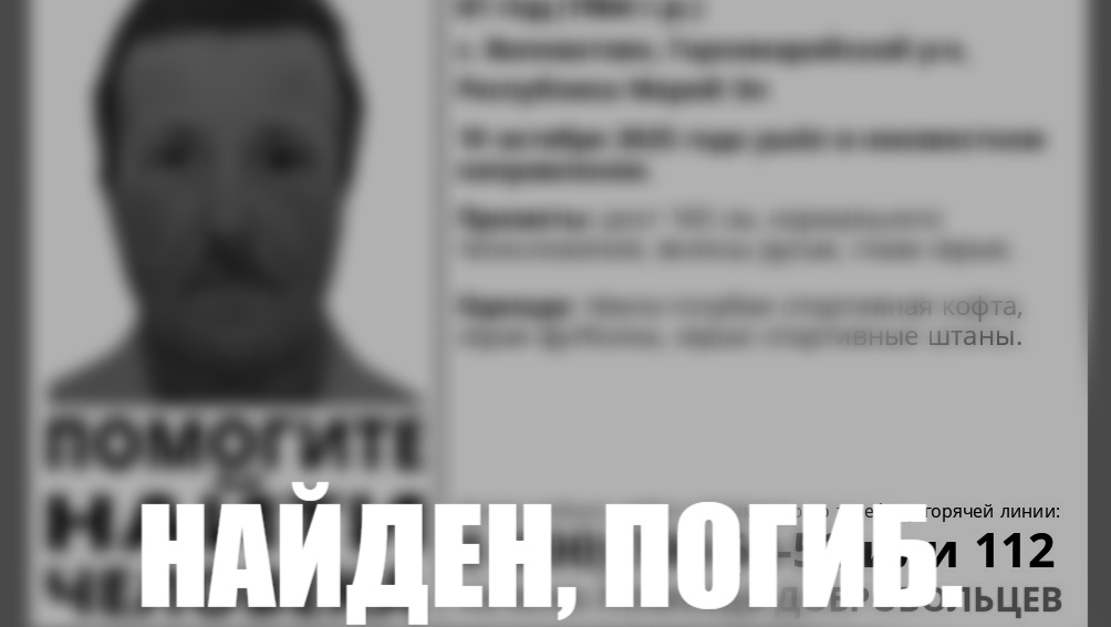 Об этом сообщает поисково-спасательный отряд «ЛизаАлерт» Марий Эл.